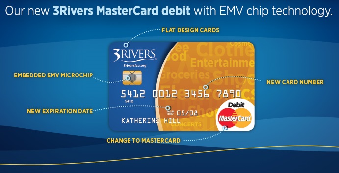 3Rivers members have received, or will soon be receiving, new debit cards featuring EMV chip technology. These new, more secure cards are a result of a required, nation-wide adoption in an effort to reduce the amount of card fraud in the United States.